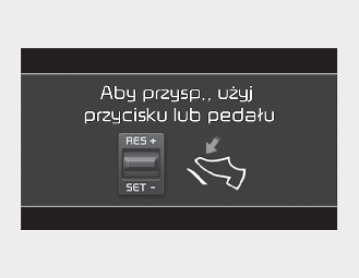Gdy w zestawie wskaźników jest wyświetlany komunikat i z przodu nie jedzie inny pojazd lub jest on bardzo daleko, po naciśnięciu