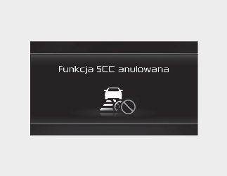 Jeżeli działanie inteligentnego tempomatu zostanie tymczasowo anulowane, w zestawie wskaźników pojawi się komunikat ostrzegawczy „Smart Cruise Control canceled” (Działanie inteligentnego tempomatu anulowane) i rozlegnie się sygnał dźwiękowy, by ostrzec kierowcę.