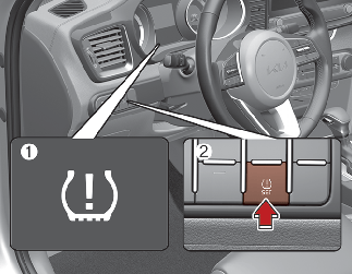 Należy zresetować system, naciskając przycisk SET TPMS zgodnie z procedurą i zapisując bieżącą wartość ciśnienia powietrza w oponach.