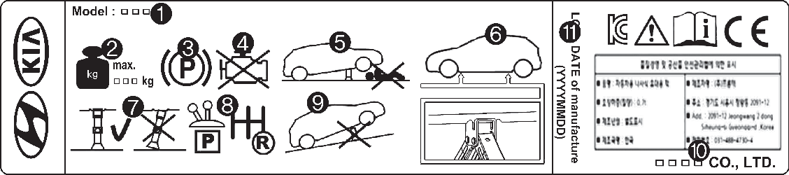 * Rzeczywista etykieta na podnośniku znajdującym się w pojeździe może wyglądać nieco inaczej niż na ilustracji. Dokładniejsza specyfikacja znajduje się na etykiecie umieszczonej na podnośniku.