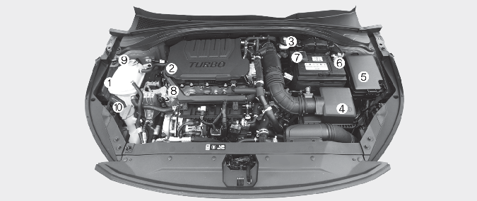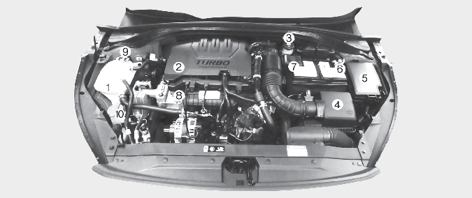 * Rzeczywisty kształt komory silnika w pojeździe może być inny niż na ilustracji.