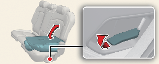 Om du vill fälla mittsätet separat trycker du på sätets fällningsspak på mittsätets rygg.