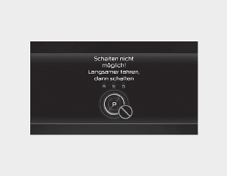 Diese Meldung wird auf dem LCD-Display angezeigt, wenn der Wahlhebel in Position P (Parkstufe) gebracht wird und sich das Fahrzeug noch bewegt.