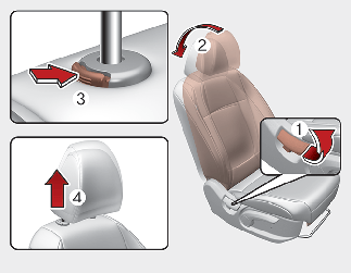 For maximum effectiveness in case of an accident, the headrest should be adjusted so the middle of the headrest is at the same height of the centre of gravity of an occupant's head. Generally, the centre of gravity of most people's head is similar with the height of the top of their eyes. Also, adjust the headrest as close to your head as possible. For this reason, the use of a cushion that holds the body away from the seatback is not recommended.