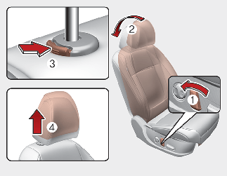 Press the headrest release button (3) whilst pulling the headrest up (4).