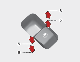 To open or close a window, press down or pull up the front portion of the corresponding switch to the first detent position (5).