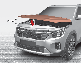 Lower the bonnet until it is about 30 cm above the closed position and let it drop. Make sure that it locks into place.