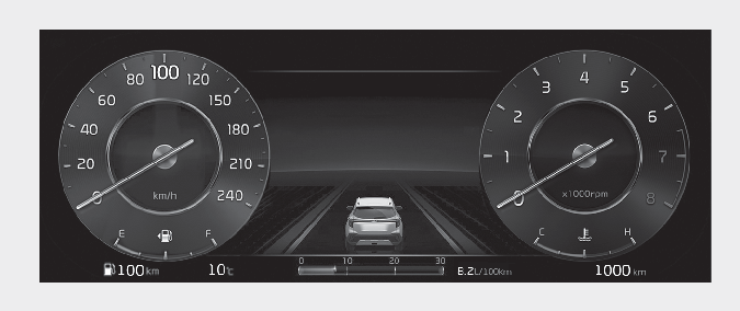 Theme A/B/C is the basic theme of the full LCD type cluster and provides different graphic styles depending on drive mode.
