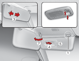 • To use the vanity mirror, pull down the visor and slide the mirror cover (4).
