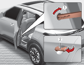 To open the rear door, pull the outside door handle (2).