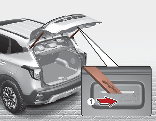 Slide the latch in the direction of the arrow(1) to unlock the tailgate.