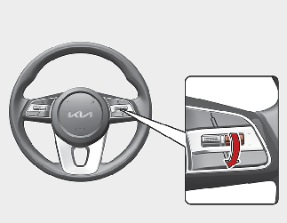 Push the - switch down and hold it whilst monitoring the set speed on the cluster. The set speed will decrease to the nearest multiple of ten (multiple of five in mph) at first, and then decrease by 10 km/h (5 mph) each time the switch is operated in this manner.