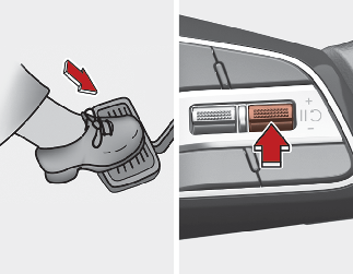 If you want to speed up temporarily when Smart Cruise Control is on, depress the accelerator pedal for a certain amount. Whilst depressing the accelerator pedal for a certain amount, the set speed, distance level and target distance will blink on the cluster. However, if the accelerator pedal is insufficiently depressed, the vehicle may slow down.