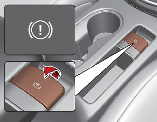 If there is a problem with the vehicle, a warning may sound once and a message may appear. If the above situation occurs, depress the brake pedal and release EPB by pressing the EPB switch.