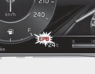The EPB warning light may illuminate if the EPB switch operates abnormally. Shut the engine off and turn it on again after a few minutes. The warning light will go off and the EPB switch will operate normally. However, if the EPB warning light is still on, have the system checked by a professional workshop. Kia recommends to visit an authorised Kia dealer/service partner.