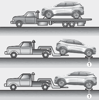 If emergency towing is necessary, we recommend having it done by an authorised Kia dealer or a commercial tow-truck service. Proper lifting and towing procedures are necessary to prevent damage to the vehicle. The use of wheel dollies (1) or flatbed is recommended.