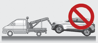 Do not tow the vehicle backwards with the front wheels on the ground as this may cause damage to the vehicle.