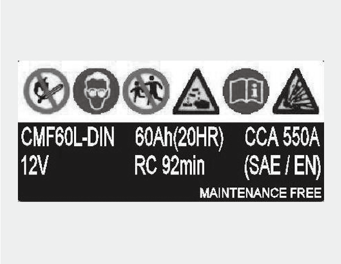 * The actual battery label in the vehicle may differ from the illustration.