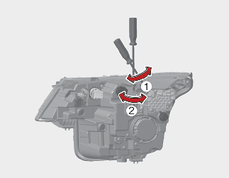 To aim the front fog lamp up or down, turn the driver clockwise or counterclockwise.