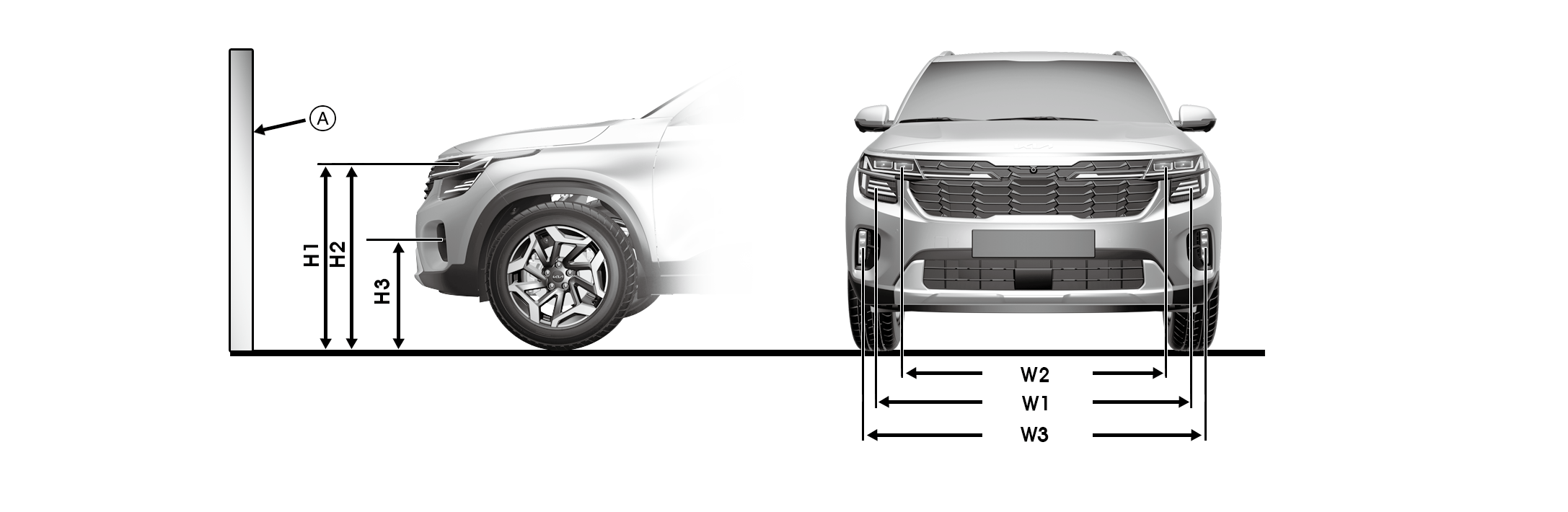 B: Vertical line of the left head lamp bulb centre