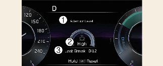 A vezetői figyelem szintje egy 1-től 5-ig terjedő listán jelenik meg. Minél alacsonyabb a szint, a vezető annál figyelmetlenebb. A szint csökken, ha a vezető bizonyos ideig nem tart szünetet a vezetésben.
