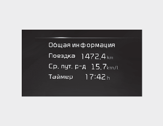 На дисплее отображается общее пройденное расстояние, средняя эффективность использования топлива и общее время в пути.