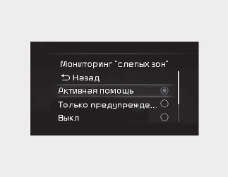 В случае выбора «Off» (Выкл.) водитель должен внимательно следить за ситуацией на дороге и соблюдать правила безопасности.