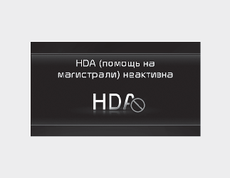 Если водитель не положит руки на рулевое колесо после предупреждения об отсутствии рук на руле, на экране появится предупреждение «Highway Driving Assist (HDA) canceled» (Вспомогательная система движения по автостраде [HDA] отменена).