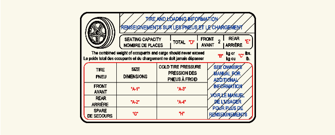 The label located on the driver's door sill gives the original tire size, cold tire pressures recommended for your vehicle, the number of people that can be in your vehicle and vehicle capacity weight.