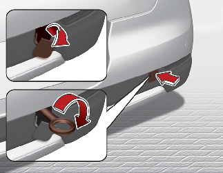Install the towing hook by turning it clockwise into the hole until it is fully secured.
