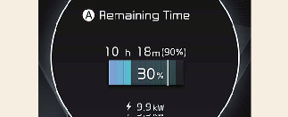Ako tijekom punjenja otvorite vrata s vozačeve strane, predviđeno vrijeme punjenja prikazuje se na instrument ploči otprilike 1 minutu. Kada se postavi zakazano punjenje ili klima uređaj/grijanje, predviđeno vrijeme punjenja prikazuje se kao „-".