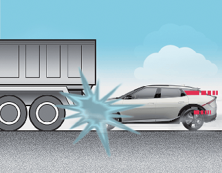 Jako kočenje spušta prednji dio vozila zbog čega se ispod vozila „vozi” s većim razmakom od tla. Zračni jastuci se možda neće napuhati u ovoj situaciji „podlijetanja”, jer se sile usporavanja koje detektiraju senzori mogu znatno smanjiti takvim sudarima s „podlijetanjem”. |