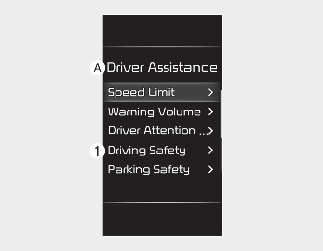 Avec le moteur en marche, sélectionnez Paramètres → Assistance au conducteur → Volume d’avertissement sur le combiné d’instruments ou Paramètres → Véhicule → Assistance au conducteur → Moyens d’avertissement dans le système d’infodivertissement pour modifier l’avertissement sonore.