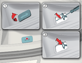 Чтобы открыть багажник вручную при разрядке аккумулятора или при возникновении проблем с автомобилем, выполните приведенную ниже процедуру.