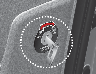 Steek om de voorpassagiersairbag uit te schakelen de hoofdsleutel in de ON/OFF-schakelaar voor de airbag en zet deze in de