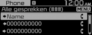 Als uw mobiele telefoon met het systeem is verbonden, kunt u iemand bellen door een naam uit uw oproepgeschiedenis of lijst met contacten te selecteren.