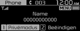 Wanneer uw mobiele telefoon eenmaal met het systeem is verbonden, kan het gespreksgeluid via de luidsprekers van het voertuig worden geleid. Dit kan zelfs het geval zijn nadat u het voertuig hebt verlaten, indien de telefoon zich binnen het verbindingsbereik bevindt. Om de verbinding te beëindigen, verbreekt u de verbinding van het apparaat met het systeem of schakelt u Bluetooth uit op het apparaat.