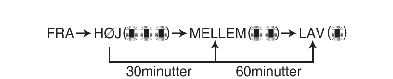 • For hvert tryk på kontakten, skifter temperaturindstillingen på sædet således: