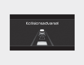 • For at advare føreren om en kollision vises advarselsmeddelelsen ‘Collision Warning’ (Kollisionsfare) på klyngen, der høres en hørbar advarsel, og rattet begynder at vibrere.