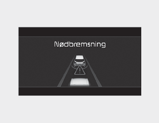 • For at advare føreren om, at nødbremsning vil blive hjulpet, vises advarselsmeddelelsen 'Emergency Braking' (Nødbremsning) på klyngen, der høres en hørbar advarsel, og rattet begynder at vibrere.