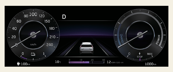 Якщо наявна комбінація приладів із цільним РК-дисплеєм (тип В), інформація відображається після отримання інформації від системи передачі відомостей про погоду через GPS. Залежно від умов прийому GPS, отримані відомості можуть відрізнятися від погоди в даний момент у вашому регіоні. Якщо інформація не отримується через GPS (наприклад, не оформлена передплата на послугу Kia Connect), погода й час будуть відображатися на комбінації приладів як «сонячна» й «ніч».