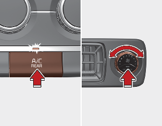 要改變後座乘客區的溫度時,把控制旋鈕向右轉可以獲得較暖的空氣,向左轉可以獲得較冷的空氣。