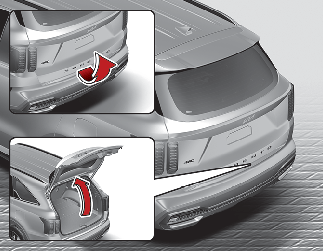 尾門向上擺動打開。打開尾門時,要確定在車輛後部附近沒有物體或人。