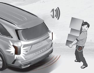 注意如果您不想打開尾門,請不要接近檢測區。如果您無意中進入偵測區,危險警報燈聊起,嗶聲響起,請攜帶智慧鑰匙離開偵測區。後車箱門將保持關閉狀態。