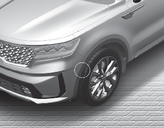 如果車輪需要定位調整(例如車輛傾斜一側),遙控智慧停車輔助可能無法正常運作。建議您請 Kia 授權經銷商/合作夥伴檢查車輛。