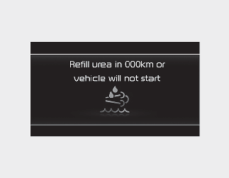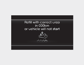 在這種情況下,需儘快補充尿素溶液罐。當尿素溶液儲罐中的尿素溶液剩餘量太低,會出現警告訊息「在 000 公里內添加尿素,否則車輛將無法啟動」以及 SCR 警告燈 (
