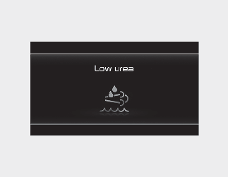 ) 顯示警告訊息「尿素溶液低」,需重新補充尿素溶液罐。若行駛一定里程後仍未補充,視覺警告系統將透過 SCR 警告燈 (