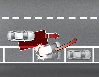 Когато се придвижвате напред от парко място, ако функцията прецени, че има опасност от сблъсък с приближаващо превозно средство в мъртвата зона, функцията ще помогне за избягване на сблъсъка чрез прилагане на спирачката.