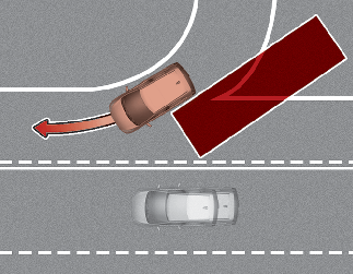 Близо до автомобила има фиксиран обект, като например звукови бариери, мантинели, централни разделителни мантинели, входно/изходни бариери, улични лампи, знаци, тунели, стени и т.н. (включително двойни конструкции)