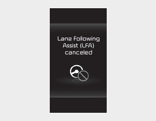 Dacă șoferul încă nu ține mâinile pe volan după avertizarea pentru punerea mâinilor pe volan, mesajul de avertizare „Lane Following Assist (LFA) canceled” (Sistem de Asistență menținere bandă (LFA) anulat) va fi afișat și sistemul de Asistență menținere bandă va fi anulat automat.